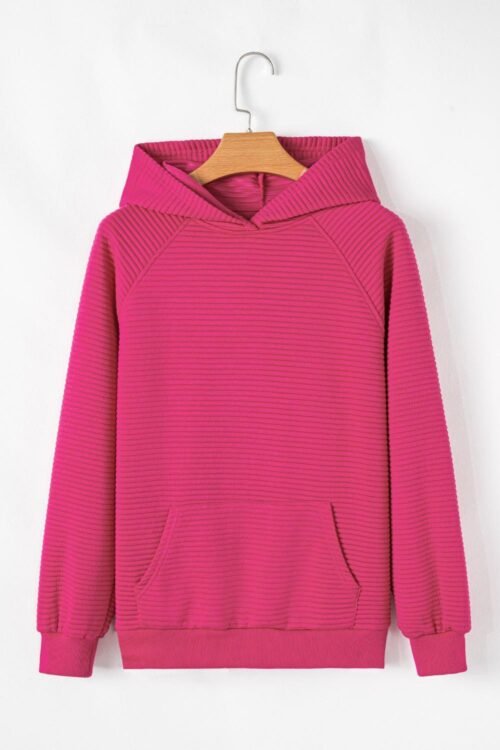 Sweatshirts & Hoodies | Women Rose Red Kangaroo Pocket Plain Textured Hoodie